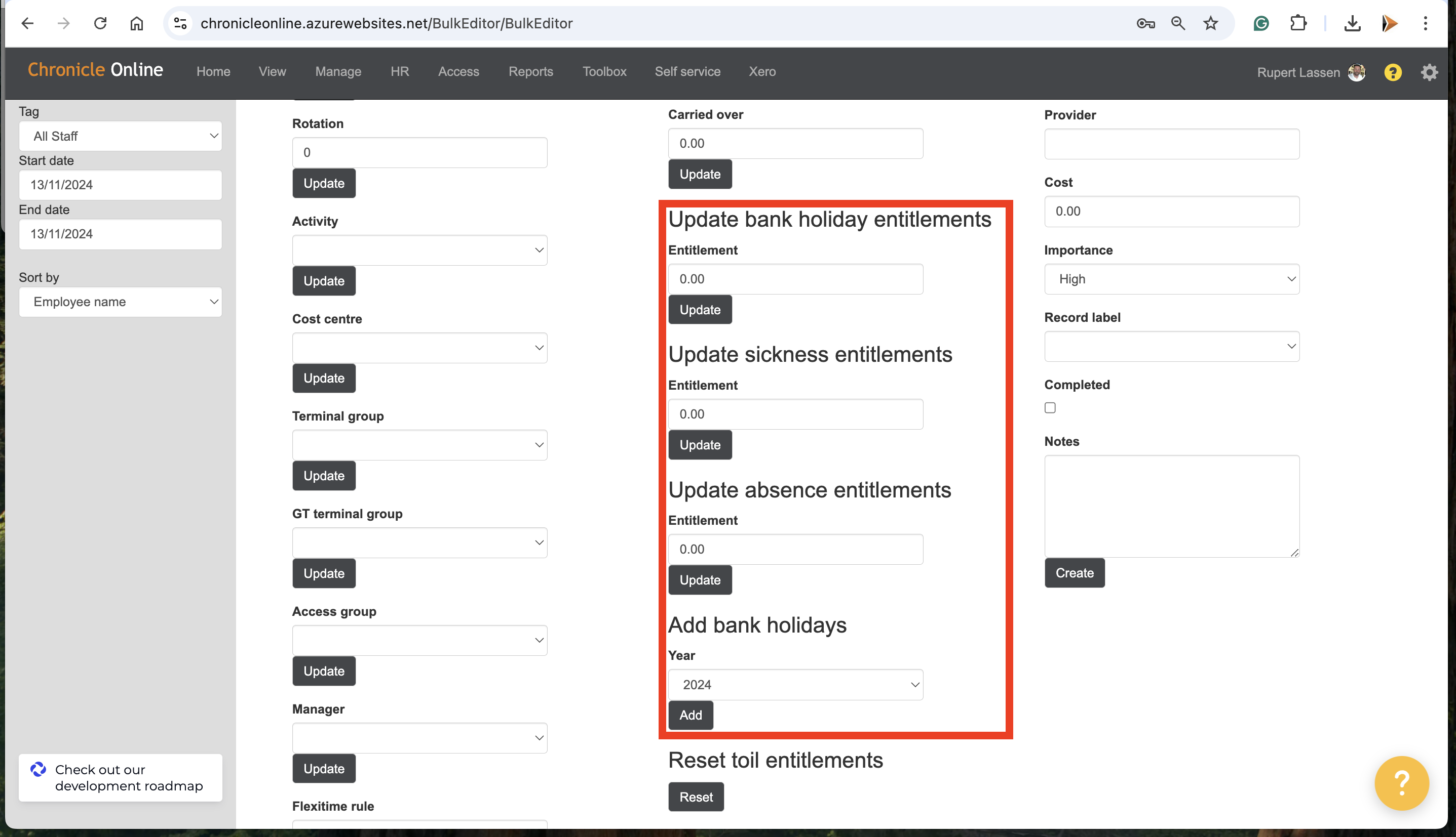 Ability to update Employees Holiday Sick and Absence Entitlement in Bulk