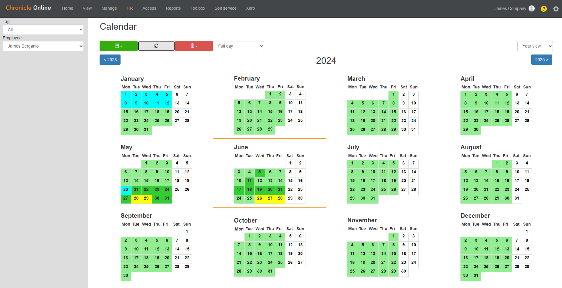 New Full Yearly Calendar Screen