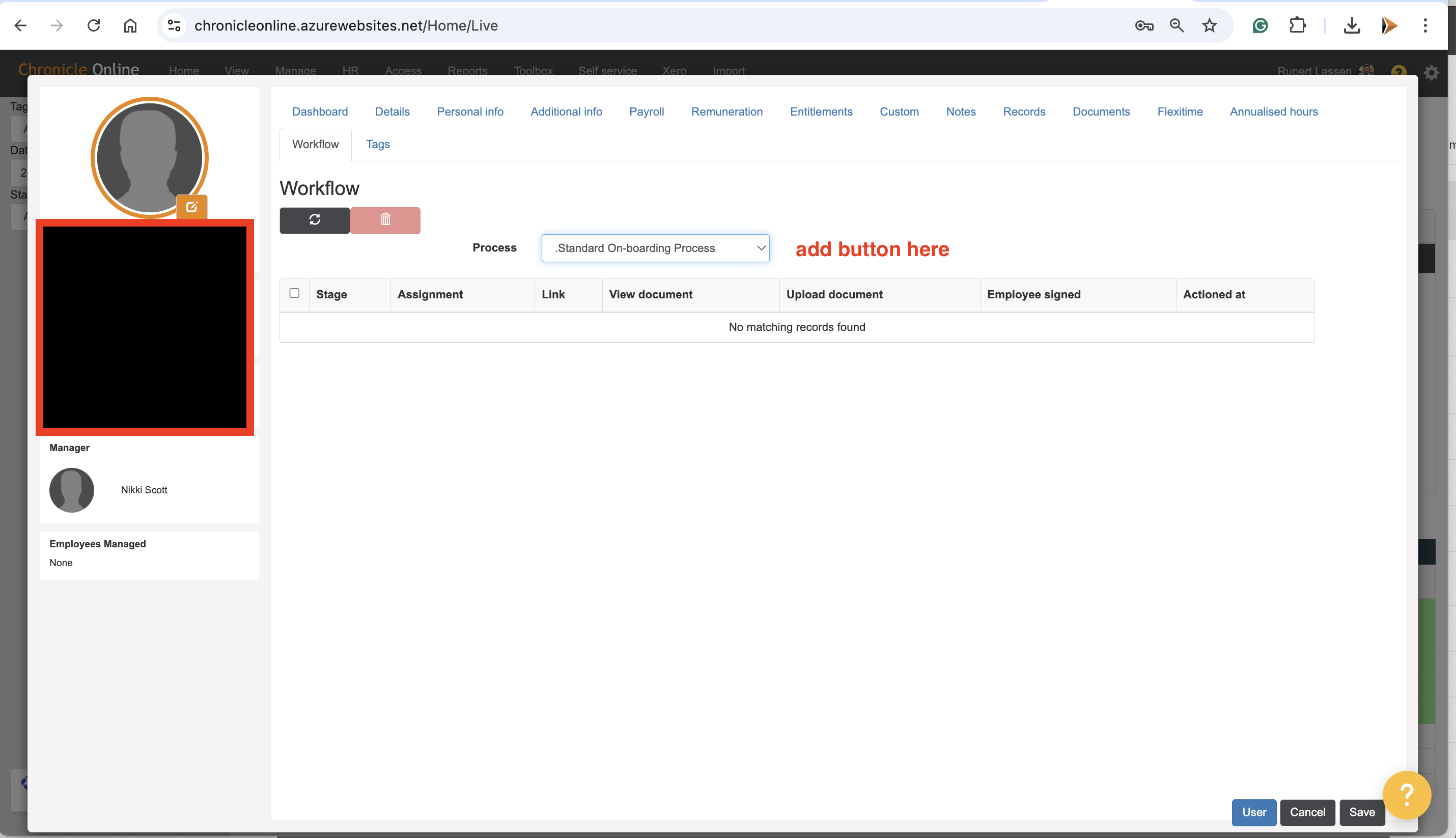 currently you have to go to workflow page and click add....easier to do from one page when setting up a new starter.