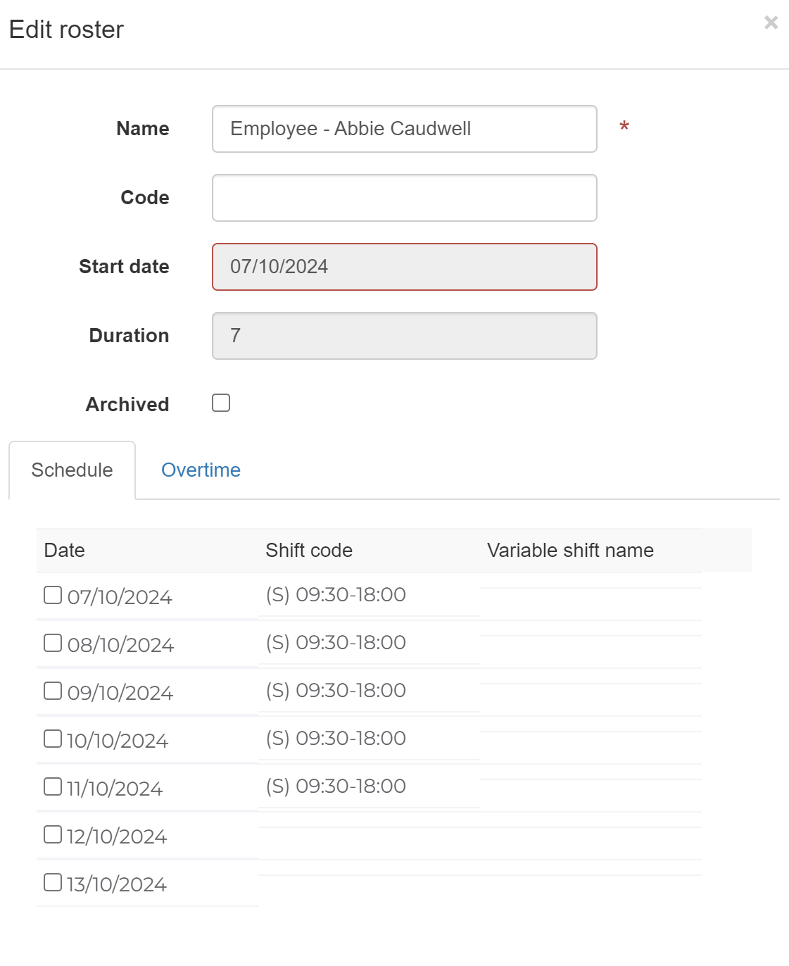 Next to date, Add the day of the week so when checking back on rotas made months ago its easy and simple to see which days are scheduled as what.