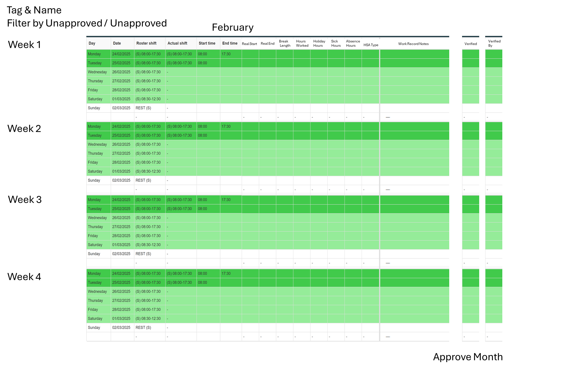 Alongside this, it would be a good idea to add in automatically locking shifts, so you could set all the shifts from the previous month / week to lock on a specific date, meaning you could look through this screen knowing that the manager wont be able to change any data later down the line